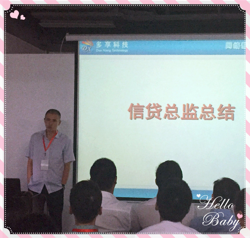 刘总发言完毕,接下来便是信贷总监蓝总上台。蓝总主要对信贷部内部的分工调整做了详细的解说,同时也提出了信贷部门8月份的工作重点。